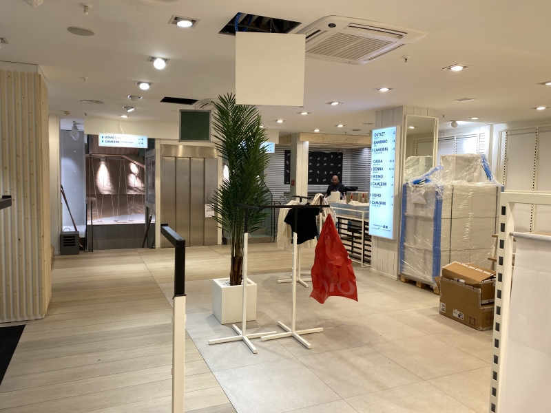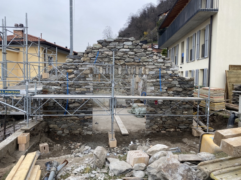 Ricerca tubi esistenti, rimozione ciottolato, scavo a mano, posa infrastrutture elettriche, posa nuove lampade, riempimento e posa ciottolato.