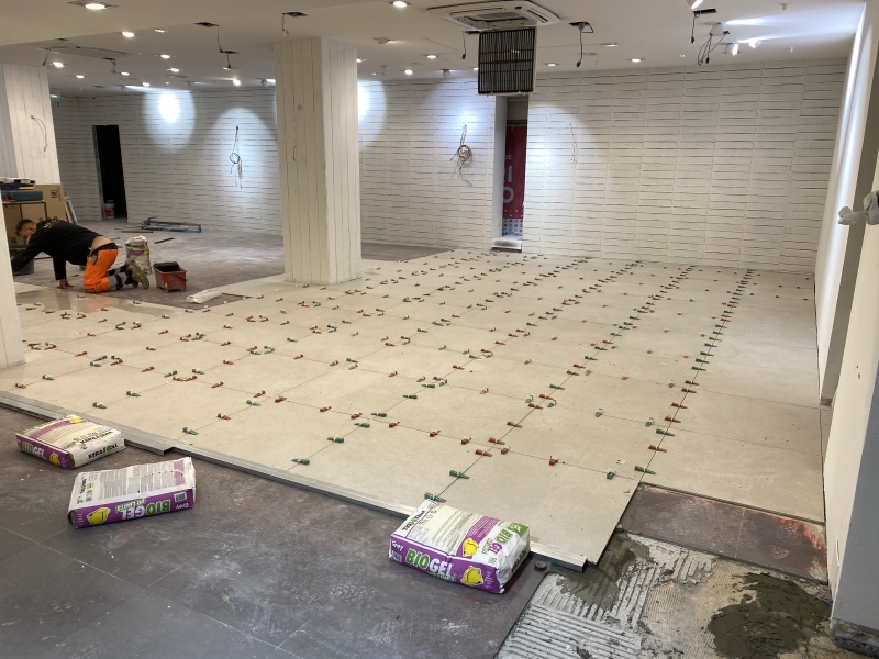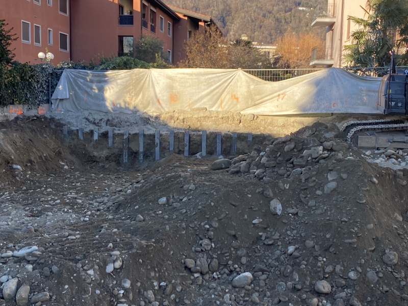 Ricerca tubi esistenti, rimozione ciottolato, scavo a mano, posa infrastrutture elettriche, posa nuove lampade, riempimento e posa ciottolato.